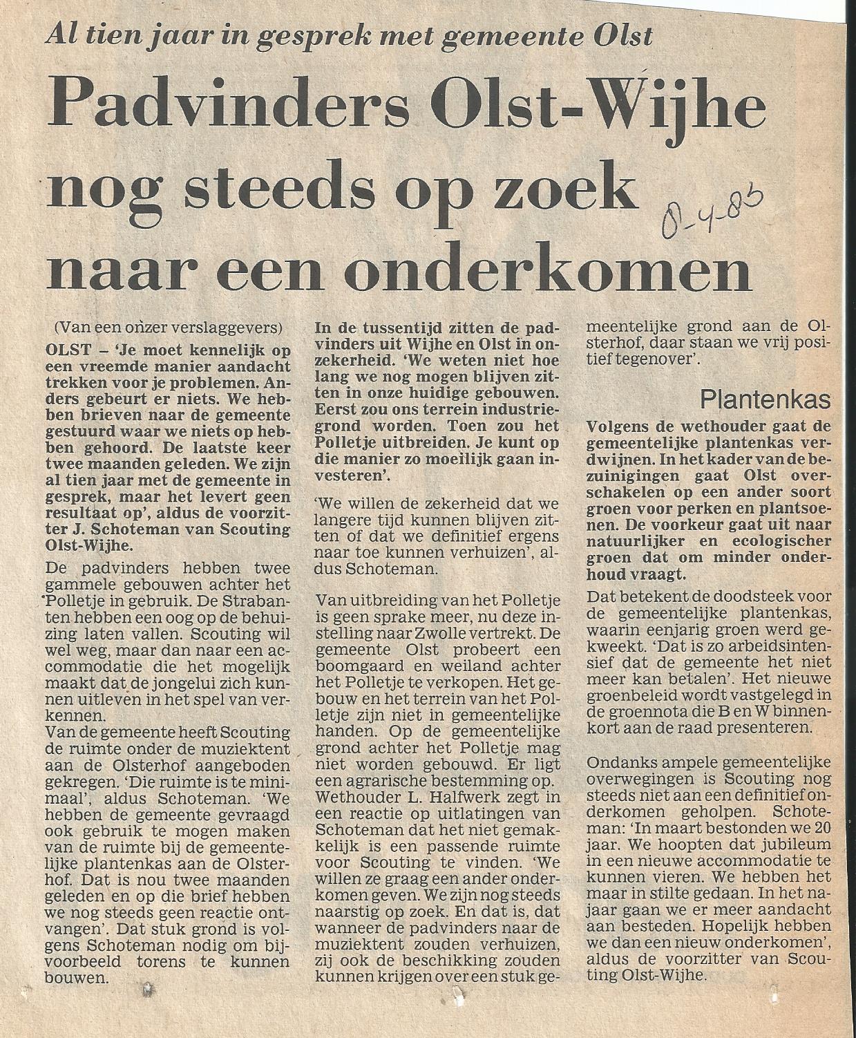 In 1970 was de groep zo groot dat moest worden uitgeweken naar de varkensstallen achter het Polletje. Daar dit onderkomen niet de meest ideale oplossing was, werd jarenlang uitgekeken naar een betere voorziening. Dat lukte eind 1986, toen was het spiksplinternieuwe gebouw bij sporthal “de Hooiberg” gereed.